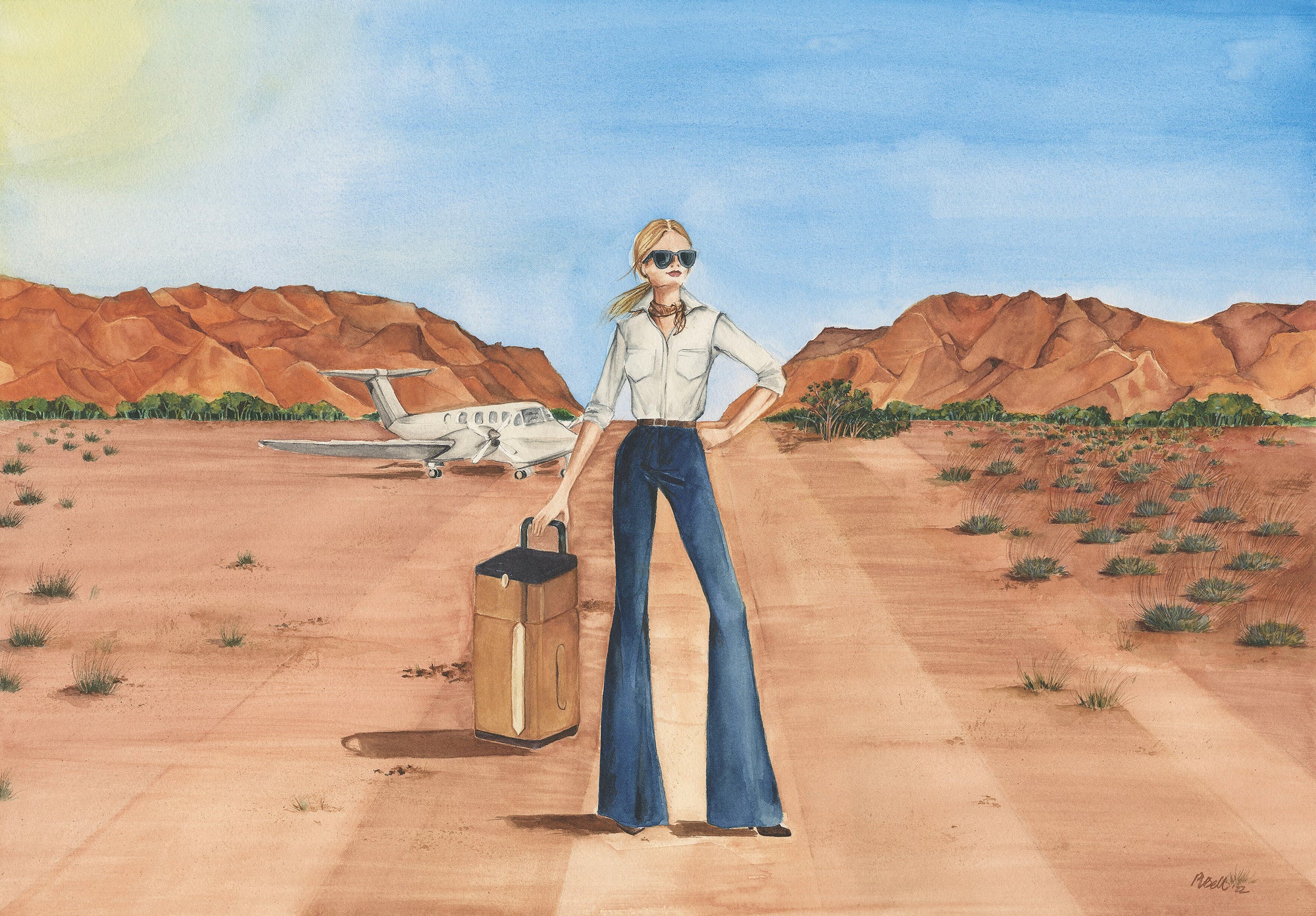 Yolande’s designs are inspired by the contrasting colours of the Australian outback that she regularly flies over in her Cessna 182.